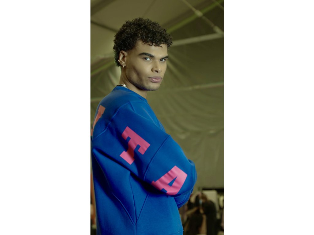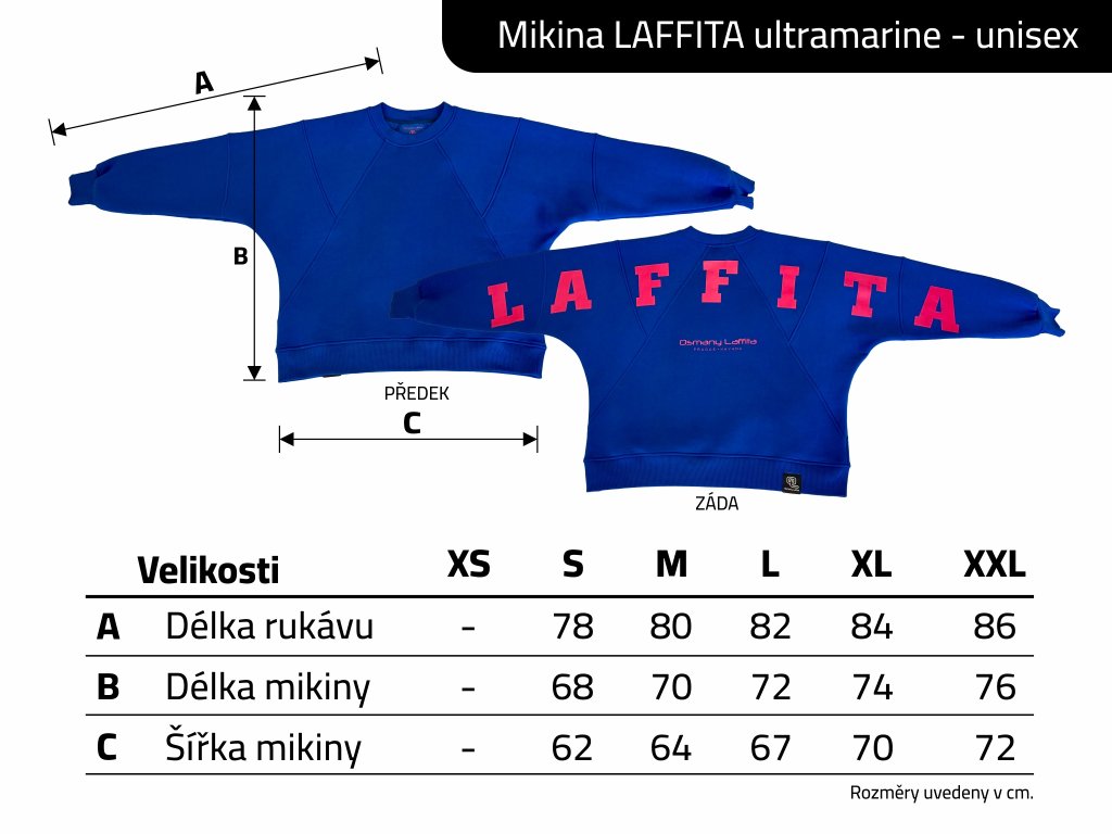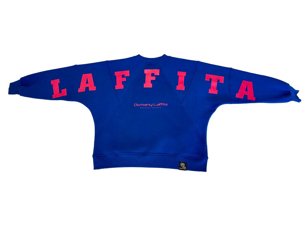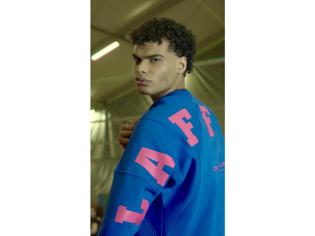 Vizuálním signature prvkem je velký růžový nápis LAFFITA na zádech, který se táhne od jedné ruky přes rameno a záda až k druhé ruce. Jeho impozantní velikost, styl a kontrastní barva vytvářejí efekt, který je okamžitě rozpoznatelný — moderní, odvážný a stylově sebevědomý.
